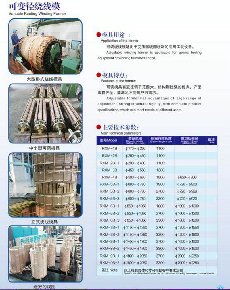 - 概述:???本可調(diào)繞線模適用于臥式或立式繞線機(jī)進(jìn)行變壓器線圈繞制的專用設(shè)備,是變壓器繞線模具更新?lián)Q代的產(chǎn)品。各種型號(hào)的繞線模的零部件均經(jīng)過電鍍或發(fā)藍(lán)處理,增加了產(chǎn)品的表面保護(hù)和美觀度。本產(chǎn)品具有變徑調(diào)節(jié)范圍大,結(jié)構(gòu)剛性強(qiáng)的優(yōu)點(diǎn),產(chǎn)品規(guī)格齊全,能滿足不同用戶的需求。